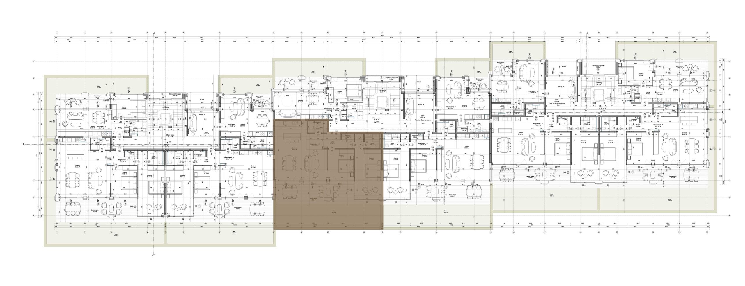 Сградите AGR 1, AGR 2 и AGR 3 са разделени на два жилищни входа – вход А и вход Б. Сгради AGR 4 и AGR 5 са разделени на три жилищни входа - вход А и вход Б и вход В. За всеки вход има предвидено лоби. Към всеки от апартаментите на първи етаж има предвиден озеленен двор, а последните етажи са с големи тераси.